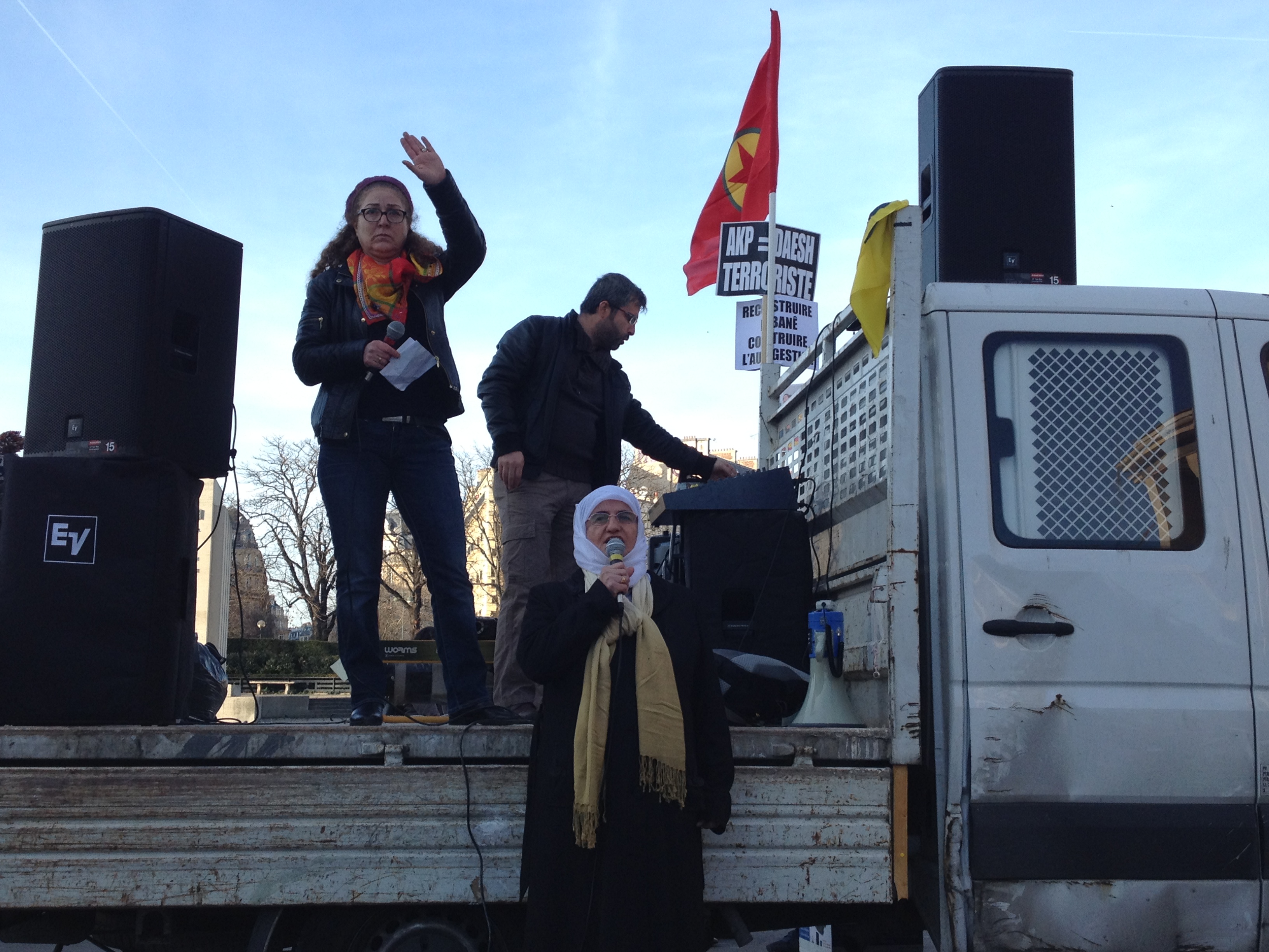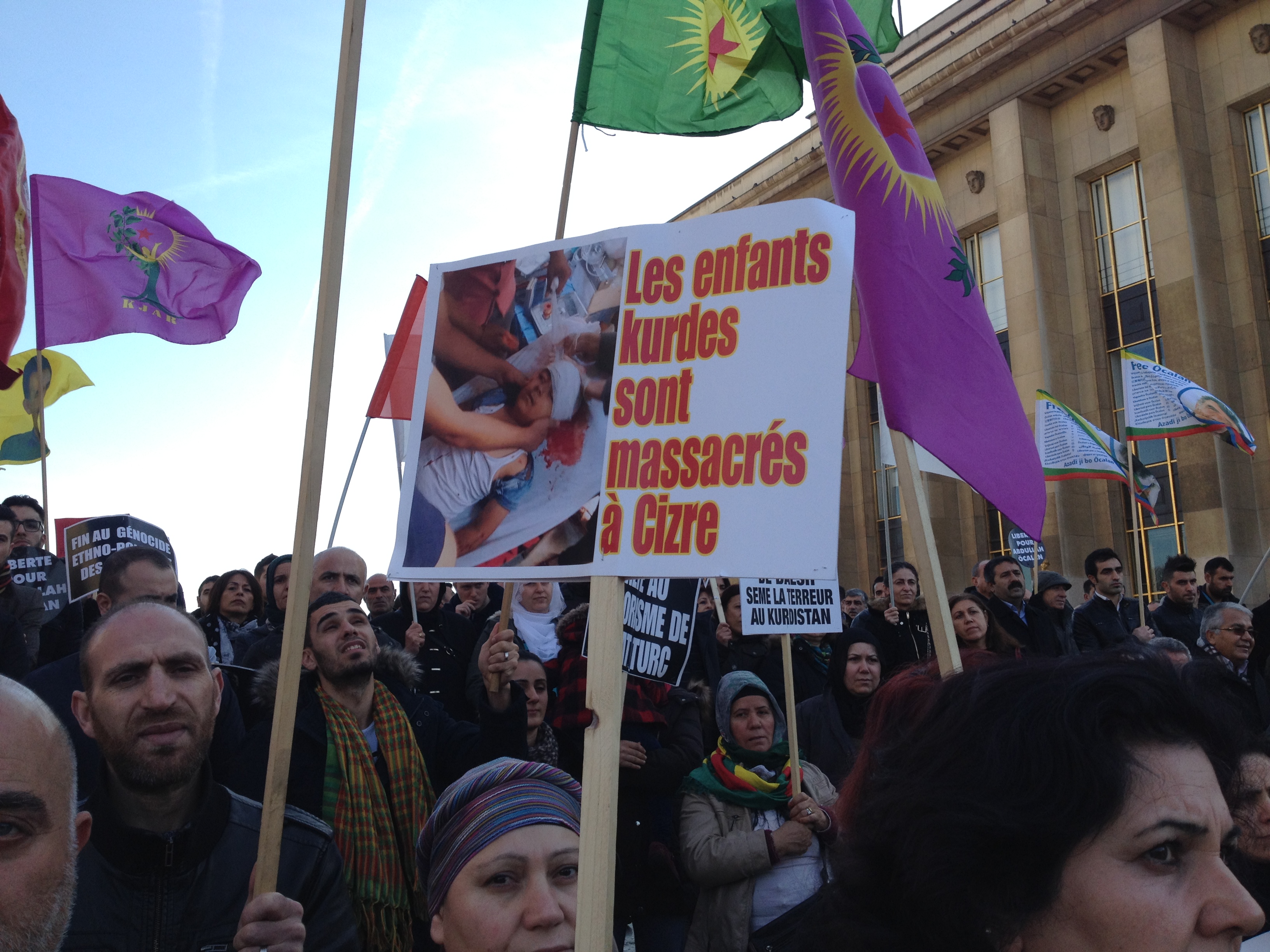 DIASPORA KURDE (SIWEL) — Près de 1000 personnes se sont rassemblées ce samedi 26 décembre sur le parvis des Droits de l’Homme à Paris pour dénoncer les massacres perpétrés par le régime fasciste du président islamiste Erdogan au Kurdistan.
