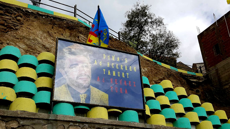 Action qui a fait « vibrer » les services de l’insécurité et du désordre du pouvoir colonial algérien, qui ont essayé à tout prix de mettre fin à la détermination de ces souverainistes kabyles, mais ces derniers leurs ont répondu par un refus total pour céder aux intimidations, ce sont ainsi ces mêmes militants indépendantistes, résolus dans leur détermination, qui ont décidé de tout affronter, et d’organiser une action au sein de leur village, pour rendre hommage à notre rebelle, en installant son portrait qui porte son dernier message de combat pour un état kabyle libre et indépendant « Ddwa-s ad ncarreg tamurt, ad nevrez tura« , une action faite dans une ambiance familiale, entre militants de la famille souverainiste kabyle.